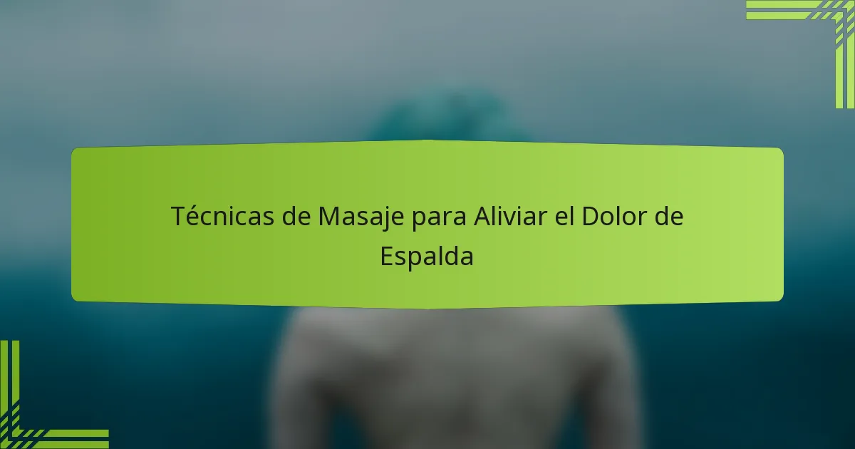 ¿Cuáles son las principales técnicas de masaje para el alivio del dolor de espalda?
